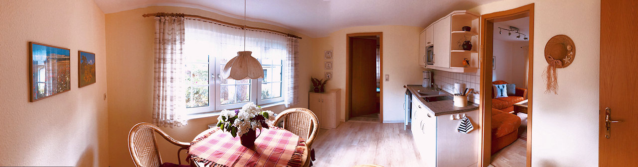 • integrierte gut ausgestattete Küchenzeile mit Esstisch